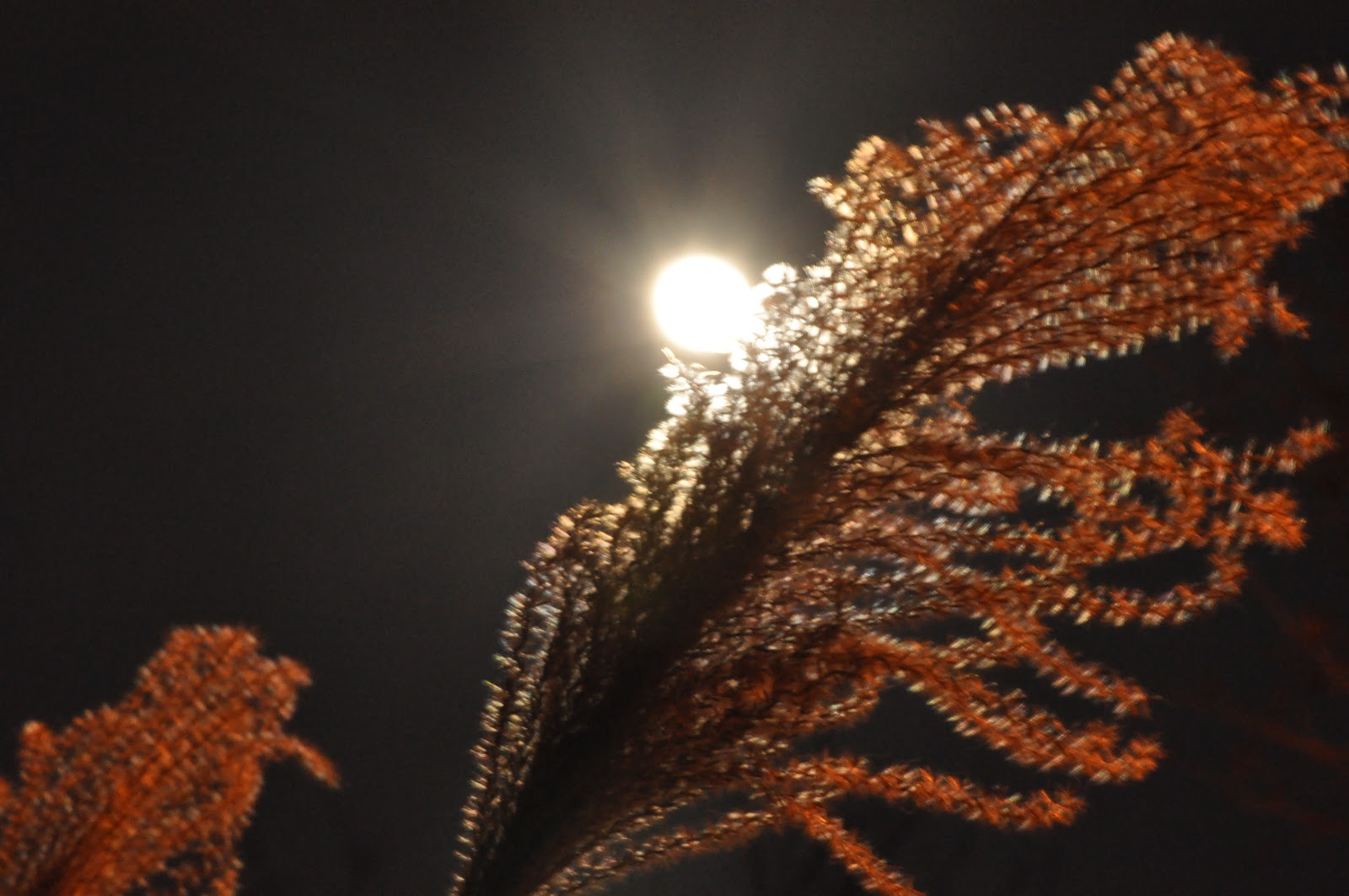 Here is a different perspective of January's full old moon nestled in the winter plumes of zebra grass in my front garden. Finally getting around to posting them now, on the eve of the next full moon.