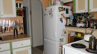There's a lot I like, though: the view to the backyard being a major attraction; the colours and painting of the cupboards that Rob did for our DIY kitchen reno more than ten years ago; and how we maximize every square inch of available space.